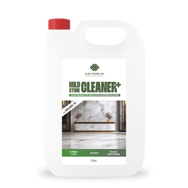 Flagstone Fix Mild Stone Cleaner Plus is a premium, water-based concentrated cleaner formulated with high-quality care agents, auxiliary agents, and refreshing scents. Free from phosphates, lyes, waxes, and polymers, it offers a biodegradable and eco-friendly solution that is safe for both users and surfaces. Its gentle yet effective formula ensures thorough cleaning without damaging delicate stone materials, making it ideal for routine maintenance.