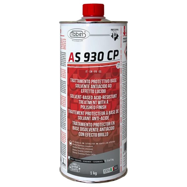 AS 930 CP is a solvent-based, protective treatment against staining agents and acid etching with a polished finish. The product has been formulated to be applied on tabletops and countertops.