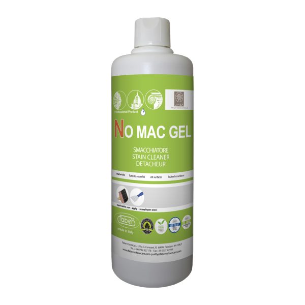 “NO MAC GEL is a water-based stain remover to be used to extract and remove coloured stains from all types of surface With its innovative formulation, the product can offer effective, definitive action on coffee stains, wine stains, and also mold.